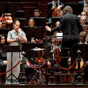 Lucie Horsch scatters cartloads of notes across the packed hall, all with the ease of brushing lint off the sofa. Enormously multi-talented – she also studied piano and singing – she proves to be the possessor of a beautiful mezzo-soprano voice, which she lets shine delightfully above the orchestra like early morning sun, especially in the final movement.